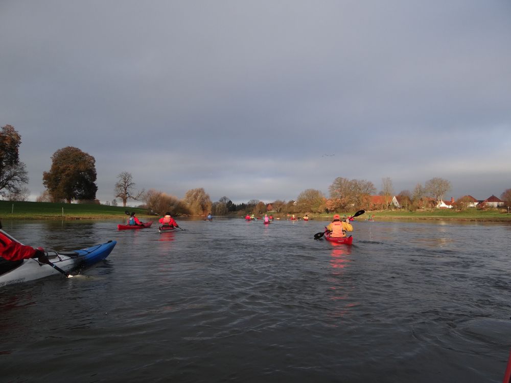19 Teilnehmende vom KCSTM bei bestem Wetter und Wasserstand. Für die 27 km von Hameln bis Rinteln haben wir gemütlich paddelnd gerade mal zwei Stunden gebraucht. Bei dem schönen winterlichen Sonnenschein fast schade! Wie immer sind wir nach der Mittagspause (wir waren vor der Suppe da!) noch nach Veltheim weitergepaddelt.